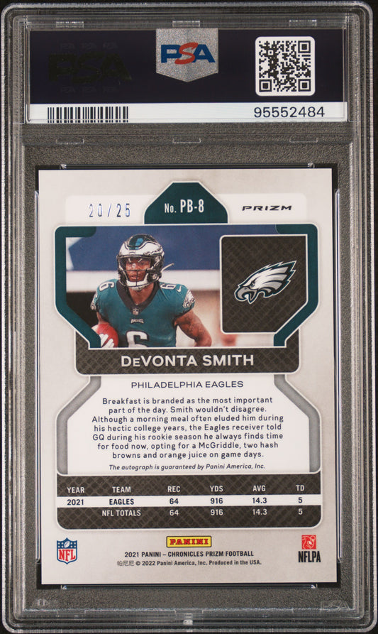 2021 Panini Prizm Black #PB-8 Devonta Smith Prizm Black-Sig-Blue/25 PSA 10