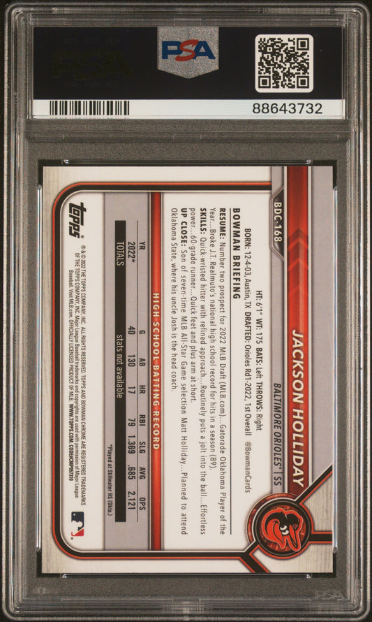 2022 Bowman Draft #BDC168 Jackson Holliday Chrome PSA 10