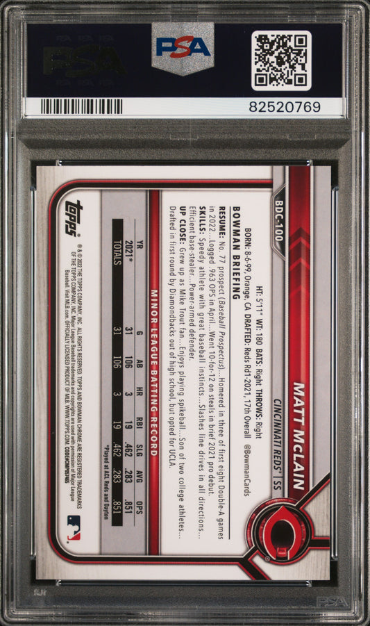 2022 Bowman Draft Chrome Sapphire Edition #BDC100 Matt Mclain Green PSA 10