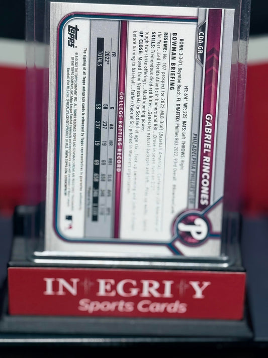 2022 Bowman Draft #CDA-GR Gabriel Rincones Chrome Draft Pick Autographs