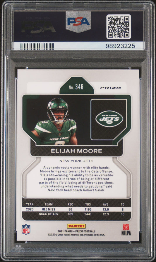 2021 Panini Prizm #346 Elijah Moore Green Ice PSA 9