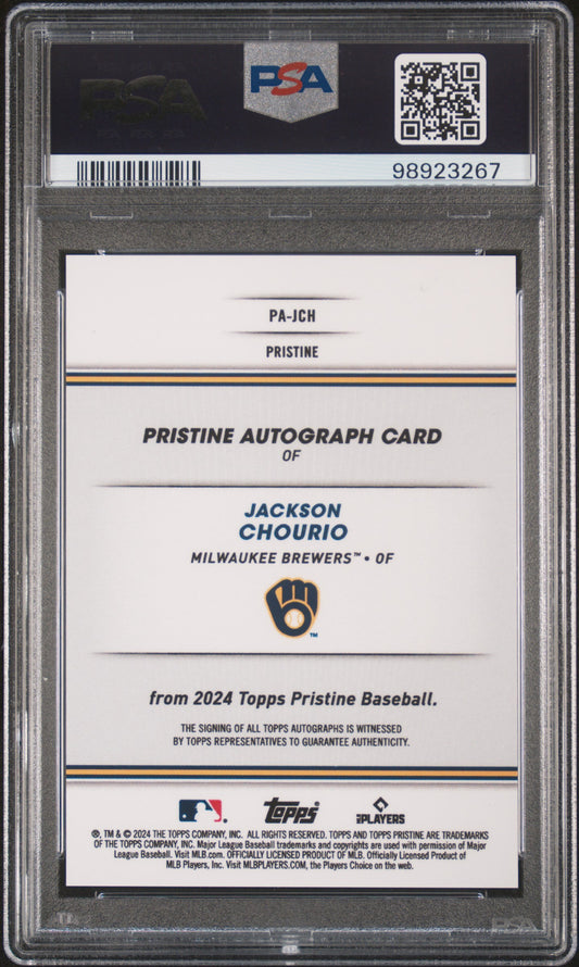 2024 Topps Pristine Auto #PAJCH Jackson Chourio Autograph-Purple/99 PSA 10