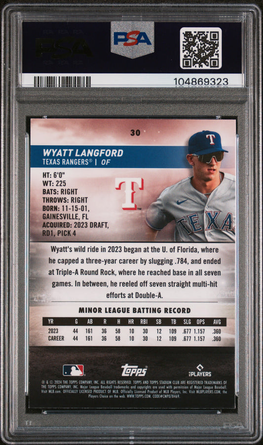 2024 Topps Stadium Club #30 Wyatt Langford Chrome PSA 10