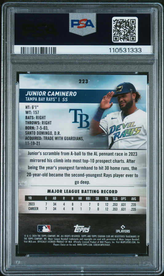 2024 Topps Stadium Club #223 Junior Caminero Chrome PSA 10