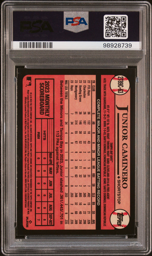 2024 Topps Silver Pack 1989 Chrome Promo #63 Junior Caminero PSA 9