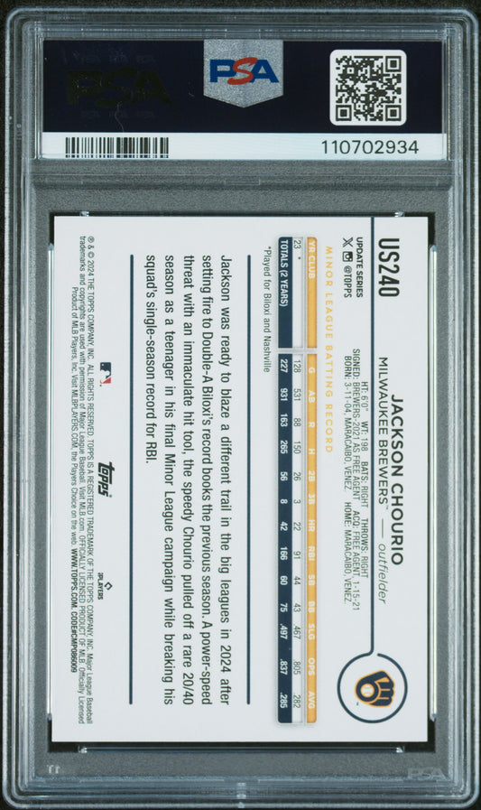 2024 Topps Update #US240 Jackson Chourio PSA 10