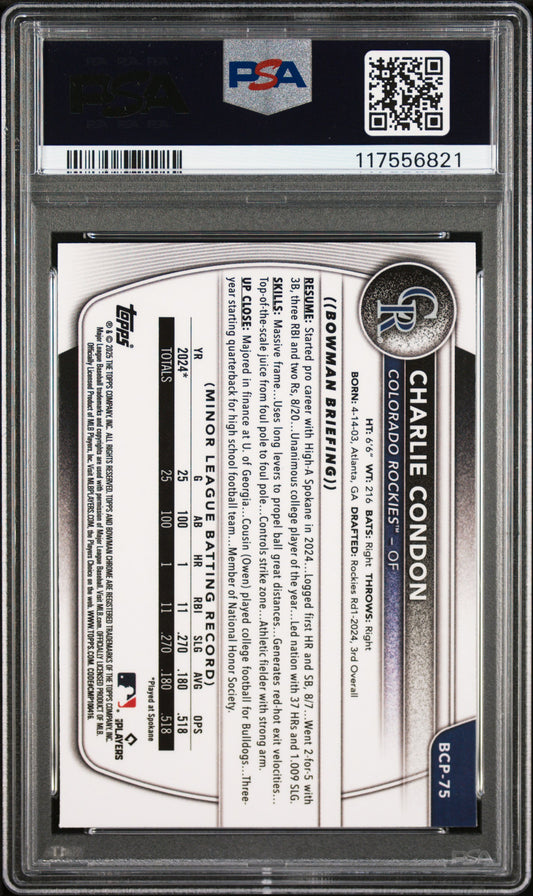 2025 Bowman Chrome Prospects #BCP75 Charlie Condon PSA 10