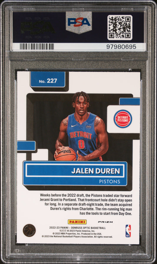 2022 Panini Donruss Optic #227 Jalen Duren Fast Break Holo PSA 9