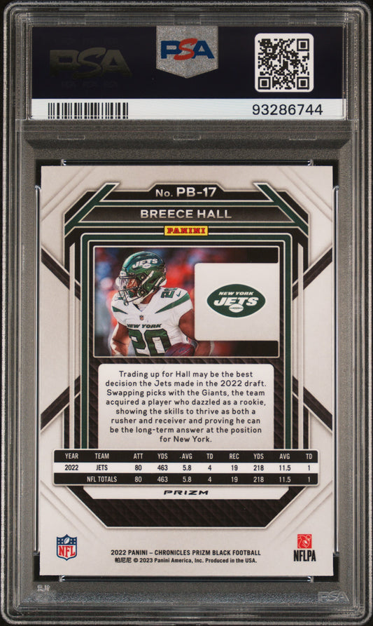 2022 Panini Chronicles Prizm Black #PB17 Breece Hall Prizm Black-Silver PSA 9