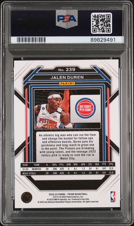 2022 Panini Prizm #239 Jalen Duren PSA 10