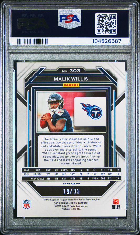 2022 Panini Prizm #303 Malik Willis Autograph-Red Shimmer PSA 9