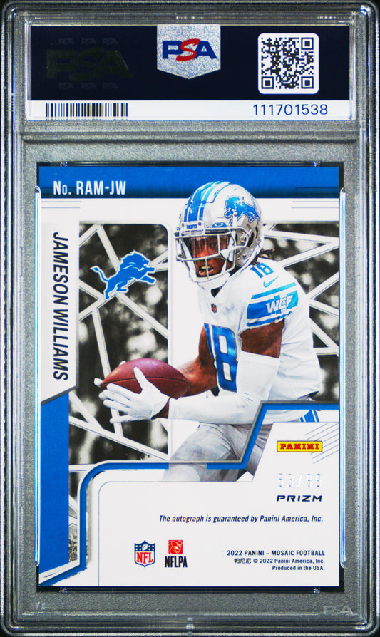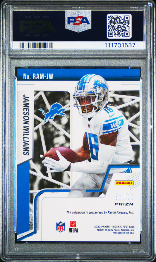 2022 Panini Mosaic Rookie Autograph Mosaic #RAMJW Jameson Williams Blue PSA 10