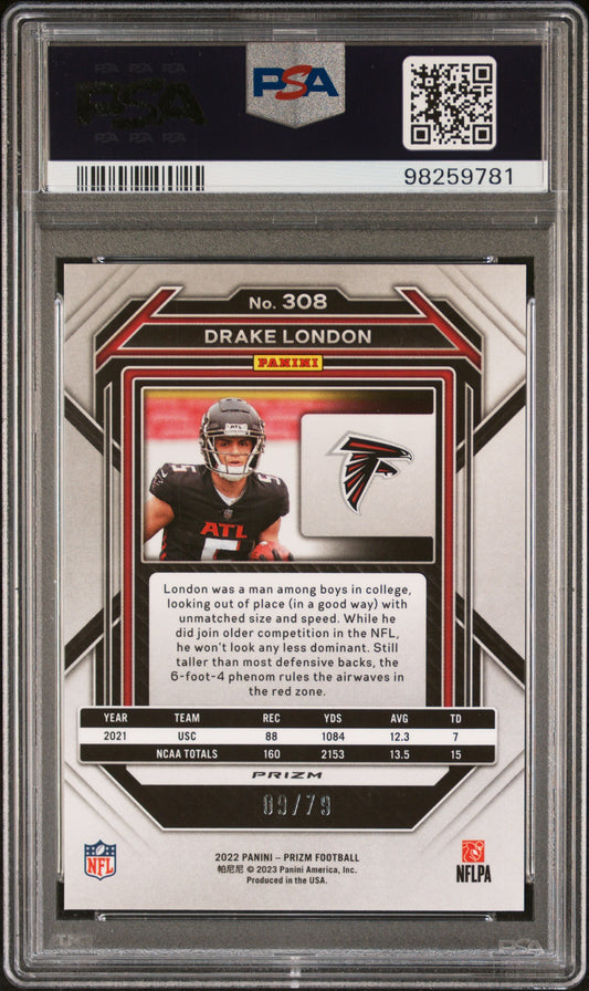 2022 Panini Prizm #308 Drake London No Huddle Blue PSA 10