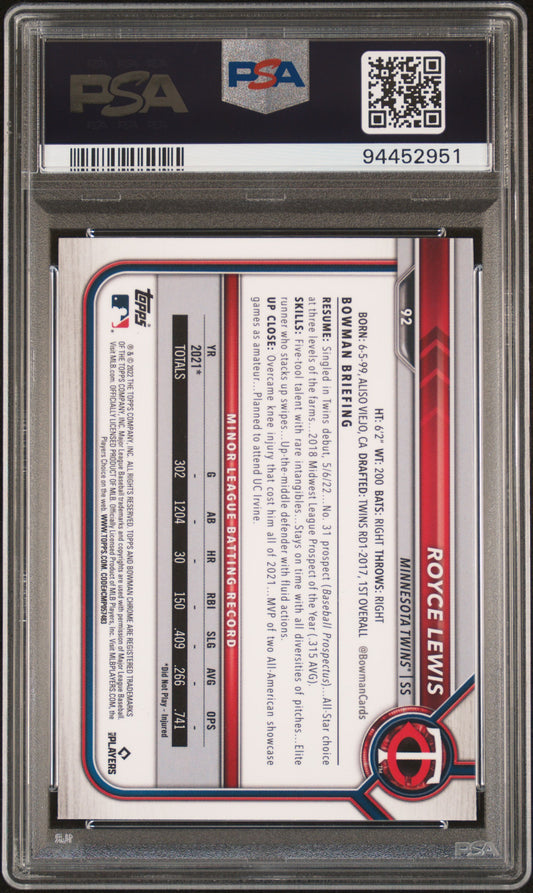 2022 Bowman Chrome Sapphire Edition #92 Royce Lewis PSA 10