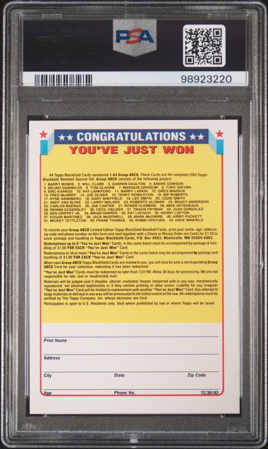 1993 Topps Black Gold Winner A/B/C/D Redemption Card PSA 9