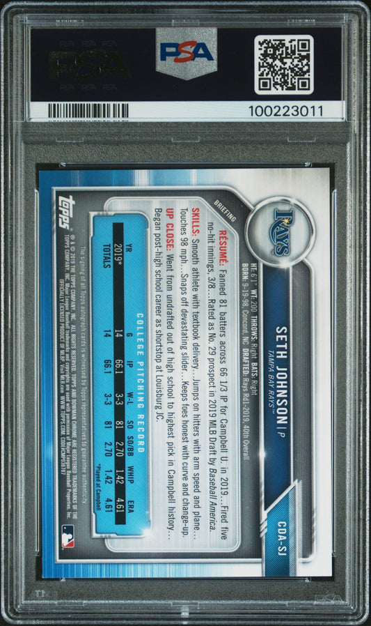 2019 Bowman Draft Chrome Draft Picks Autograph #CDASJ Seth Johnson PSA 10