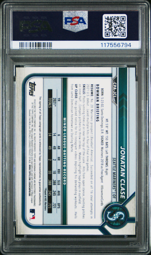 2022 Bowman Chrome Prospect Autographs #CPAJCL Jonatan Clase PSA 9