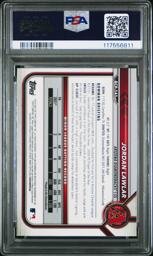 2022 Bowman Sapphire Edition Chrome Prospects #BCP141 Jordan Lawlar PSA 9